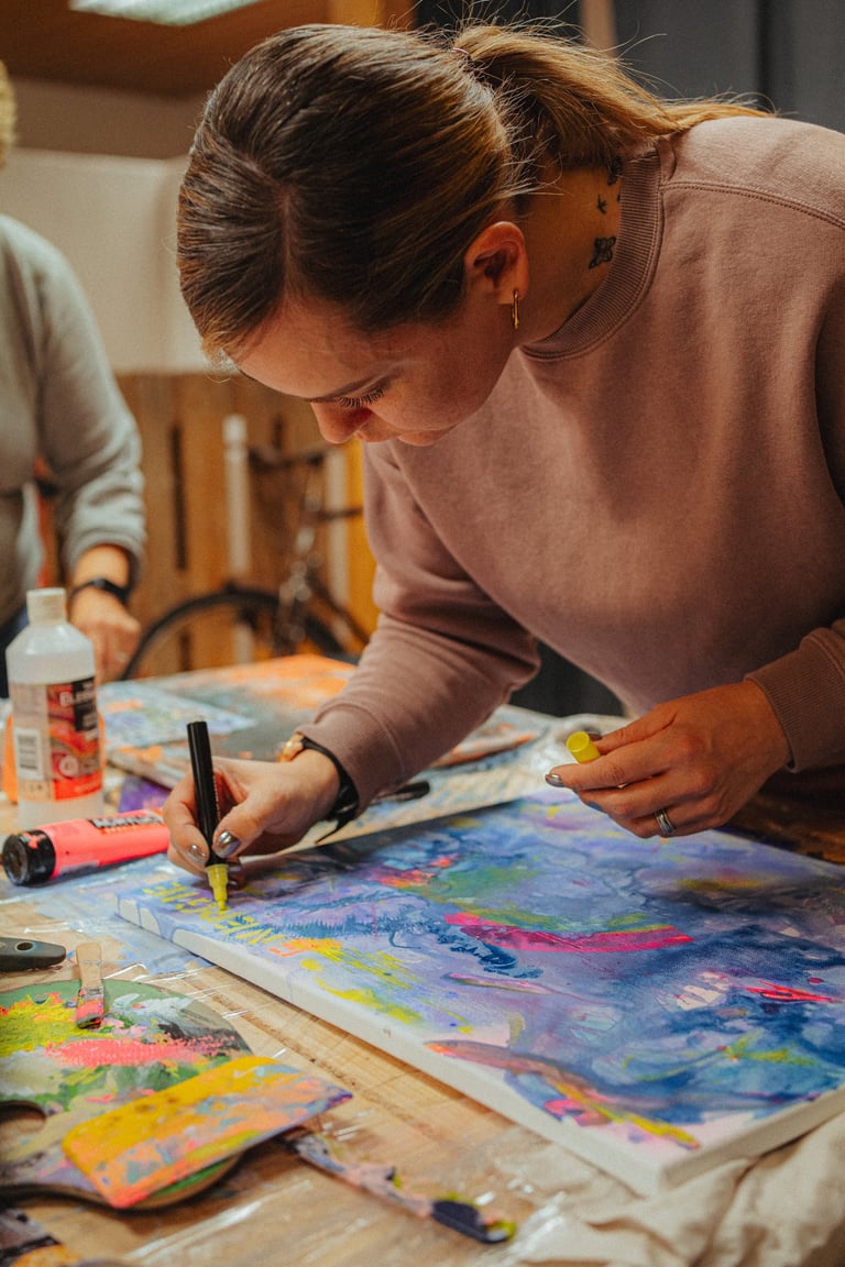 Kreativität, Begegnungen und Raum zum Sein. Gemeinsam Momente schaffen. Ich begleite kreative Workshops und halte den Raum.